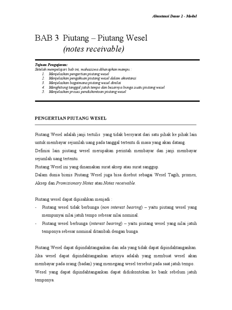 Garsia membuat surat wesel untuk debiturnya pt.soya dengan wesel tagih rp. Contoh soal utang wesel berbunga. 2 % (dua persen) dari penjualan bersih. Sebagai contoh , perusahaan a meminjam dalam bentuk notes payable, dengan bunga 12% pertahun dengan nominal $10.000 pada tanggal 31 mei 2019 dengan masa. Account receivable (piutang dagang) pengertian piutang :
